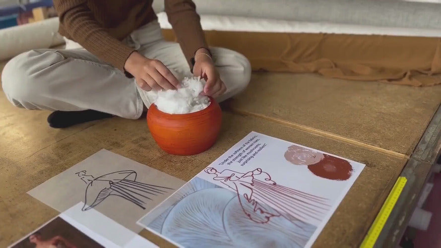 Handpicked deadstock fabrics, chosen for their beauty and sustainability, ready for transformation.